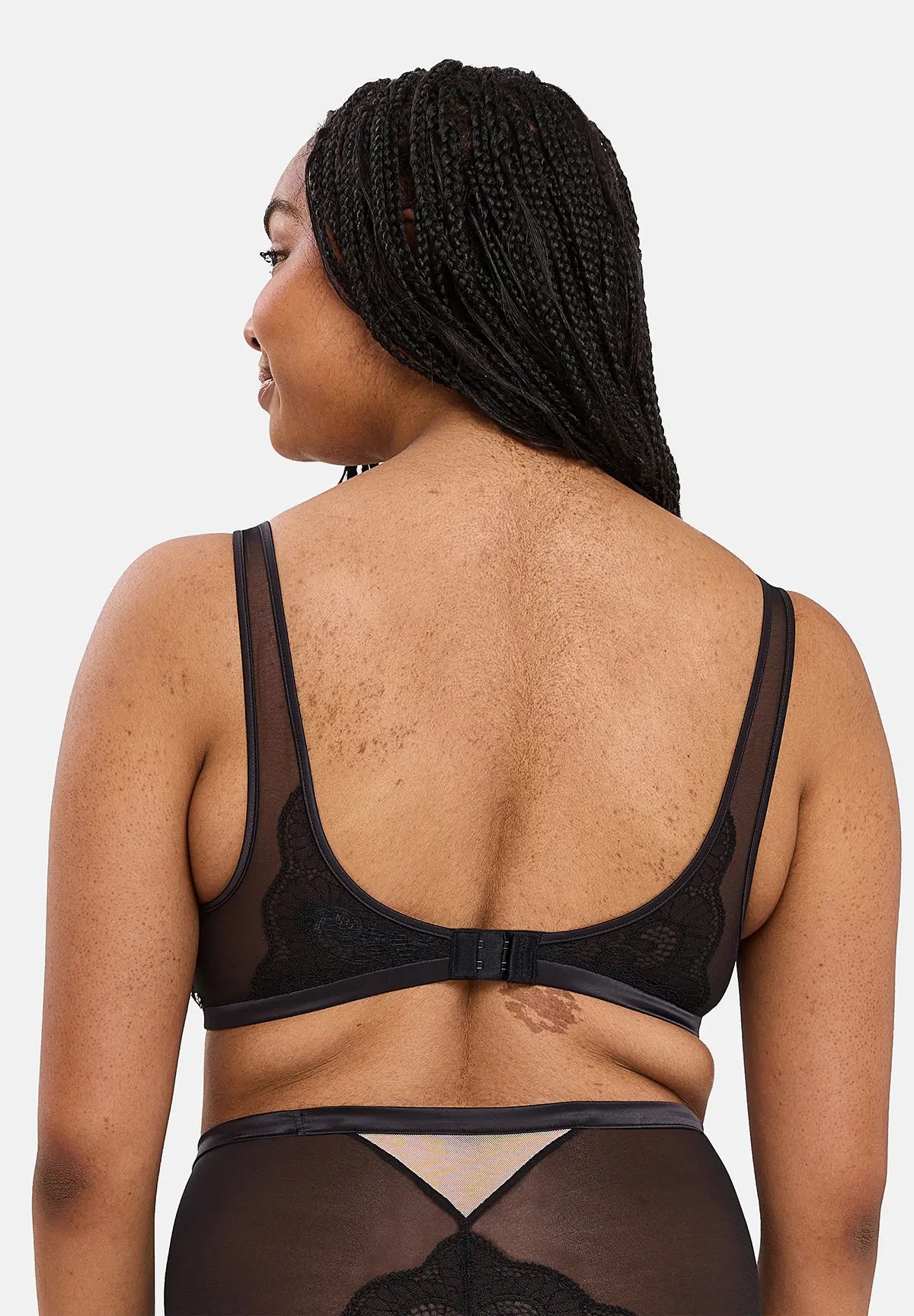 Une dentelle délicate se pose sur votre décolleté, accompagnée de tulle pour un effet voilé/dévoilé. Le soutien-gorge sans armatures Serena est l'alliance parfaite entre glamour et séduction.
